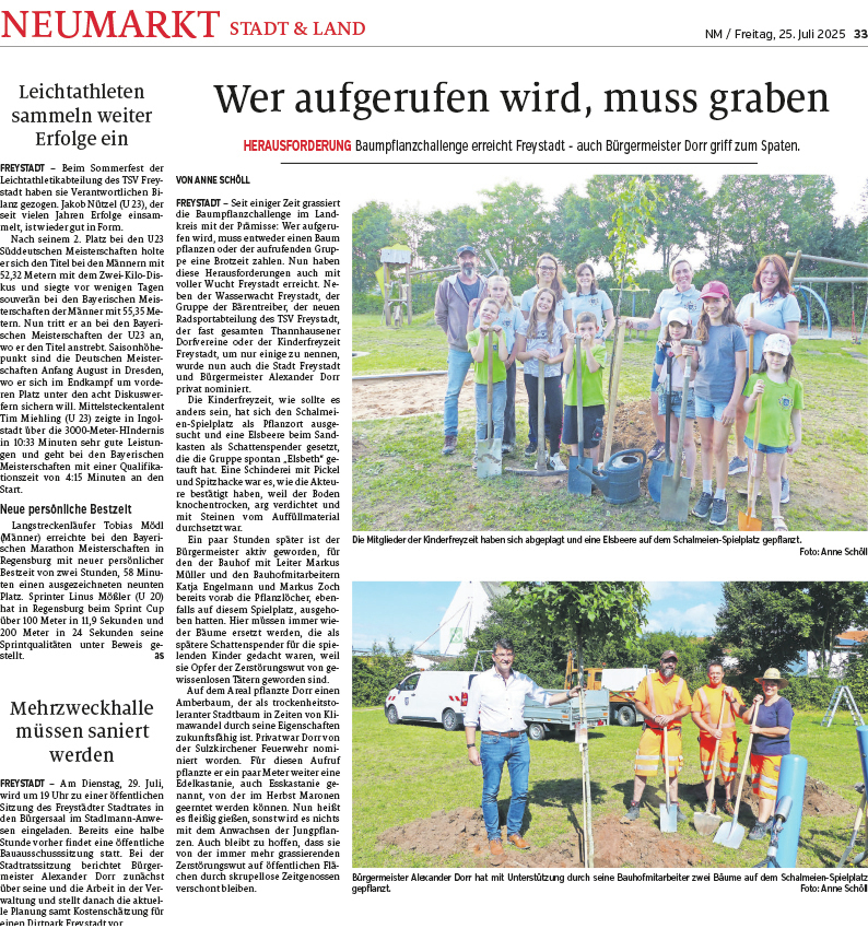 Stets ein offenes Ohr für die Anliegen des Vereins hat Bürgermeister Alexander Dorr, der sich über den großartigen Einsatz der jungen Familien freut. „Hier engagieren sich Eltern für die Allgemeinheit und ganz Freystadt profitiert“, sagt Dorr.